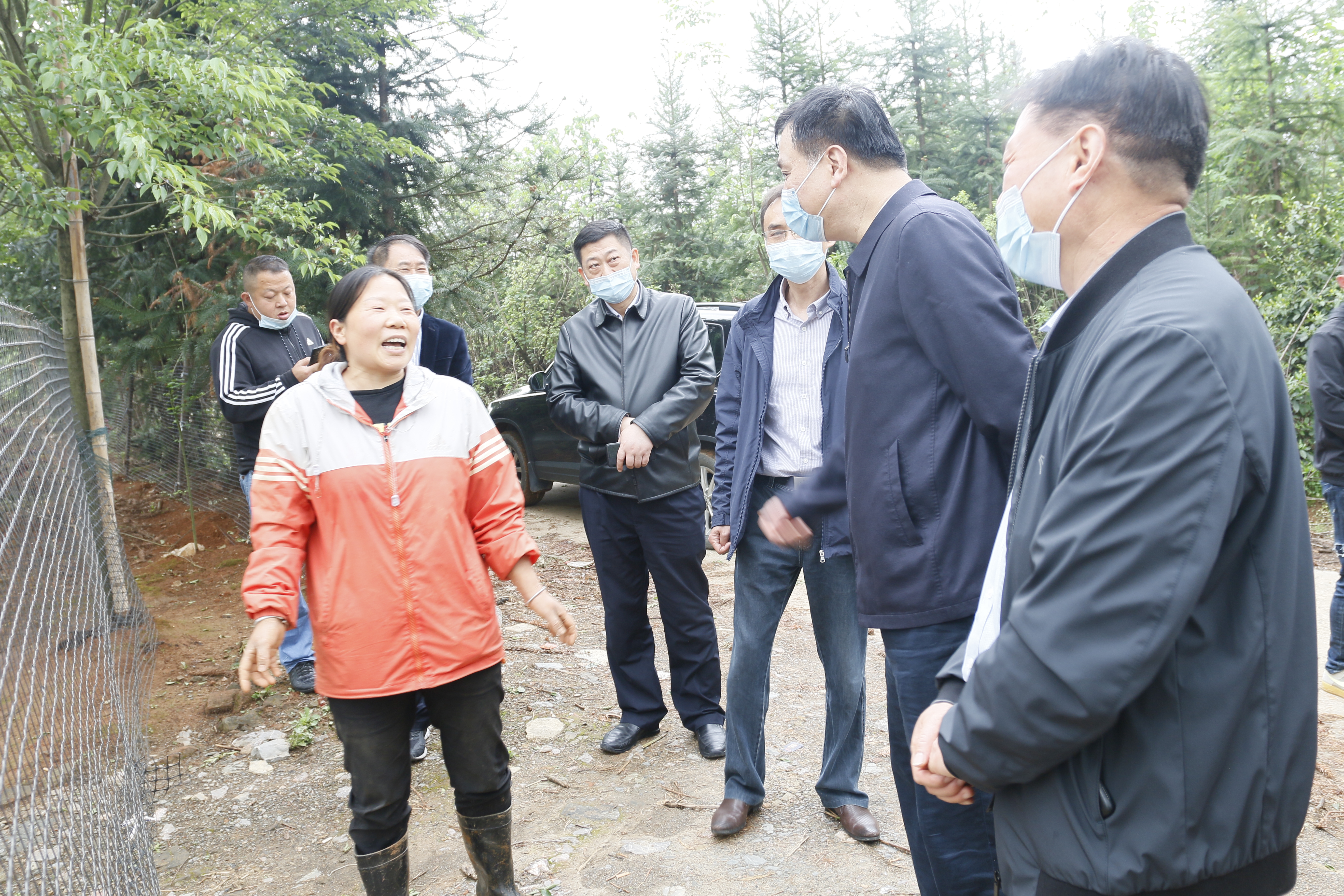 (图为审计驻村工作队查看坡地农业设施建设和青苗长势情况)
