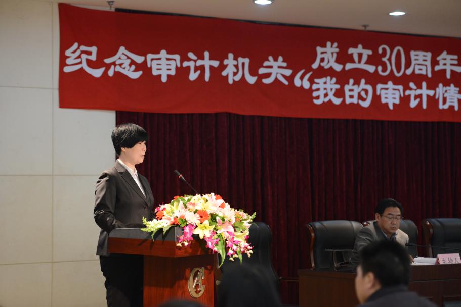 图为作者(左一)在局纪念审计机关成立30周年演讲比赛现场