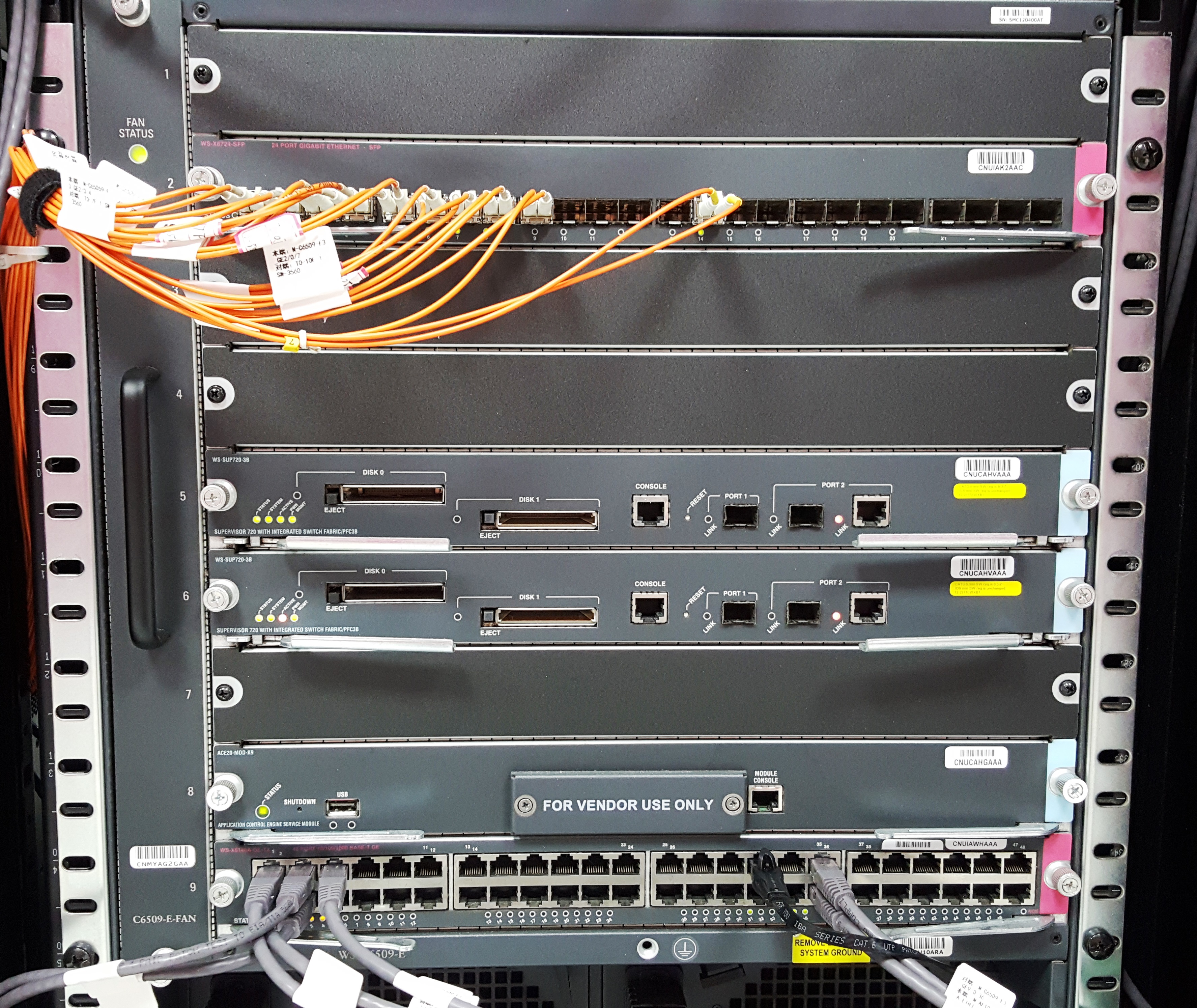 2008年武汉市局搬入新大楼时使用的思科C6509核心交换机