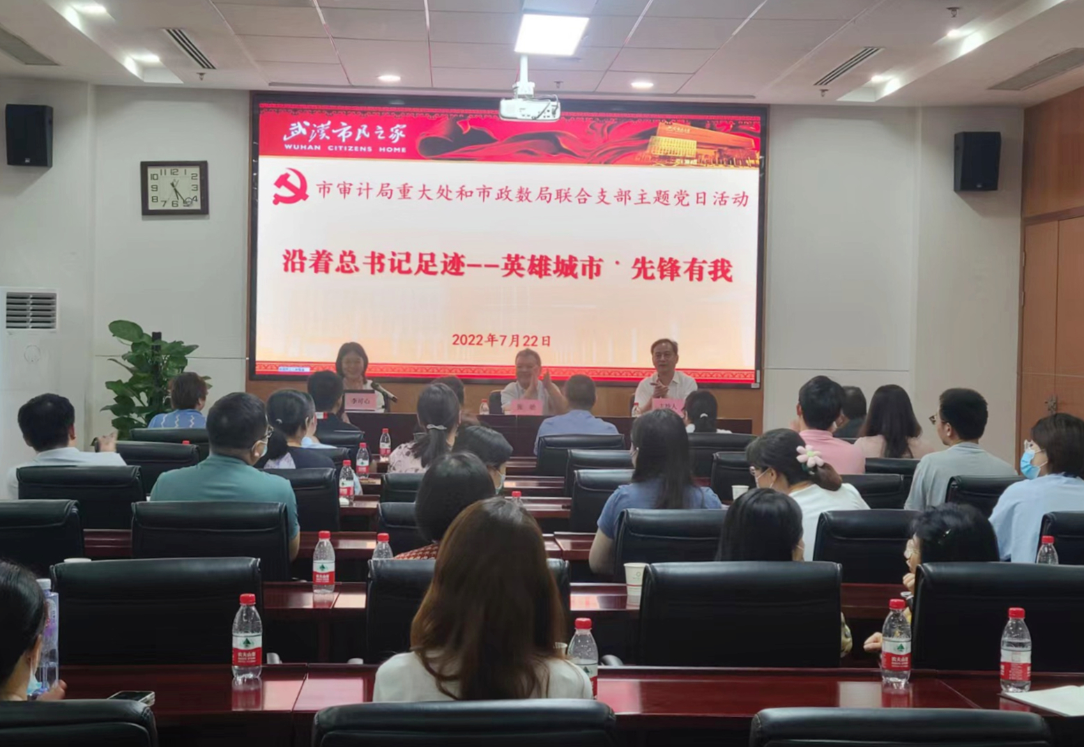 为深入学习贯彻落实习近平总书记考察湖北武汉重要讲话精神和省第十二次党代会精神,武汉市审计局重大项目审计处、机关党委党支部联合市政务服务和大数据管理局以“英雄城市·先锋有我”为主题开展党建联建活动。