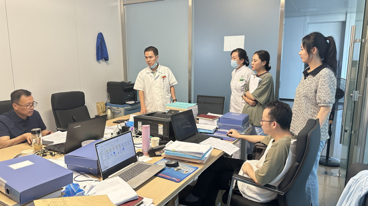 图为审计人员了解药品和医药耗材管理系统、采购流程情况