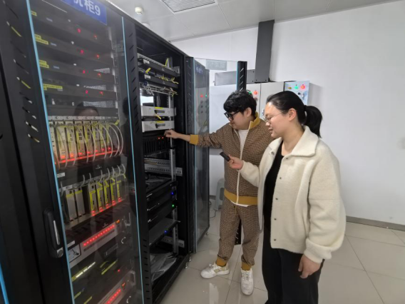图为审计人员查看设备运行情况