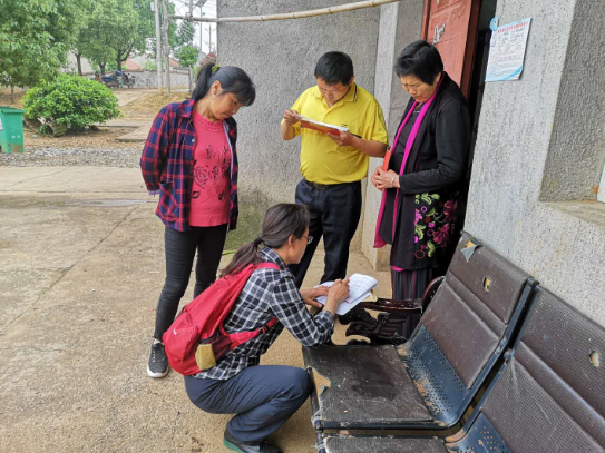 图为慰问人员记录调研走访贫困户情况