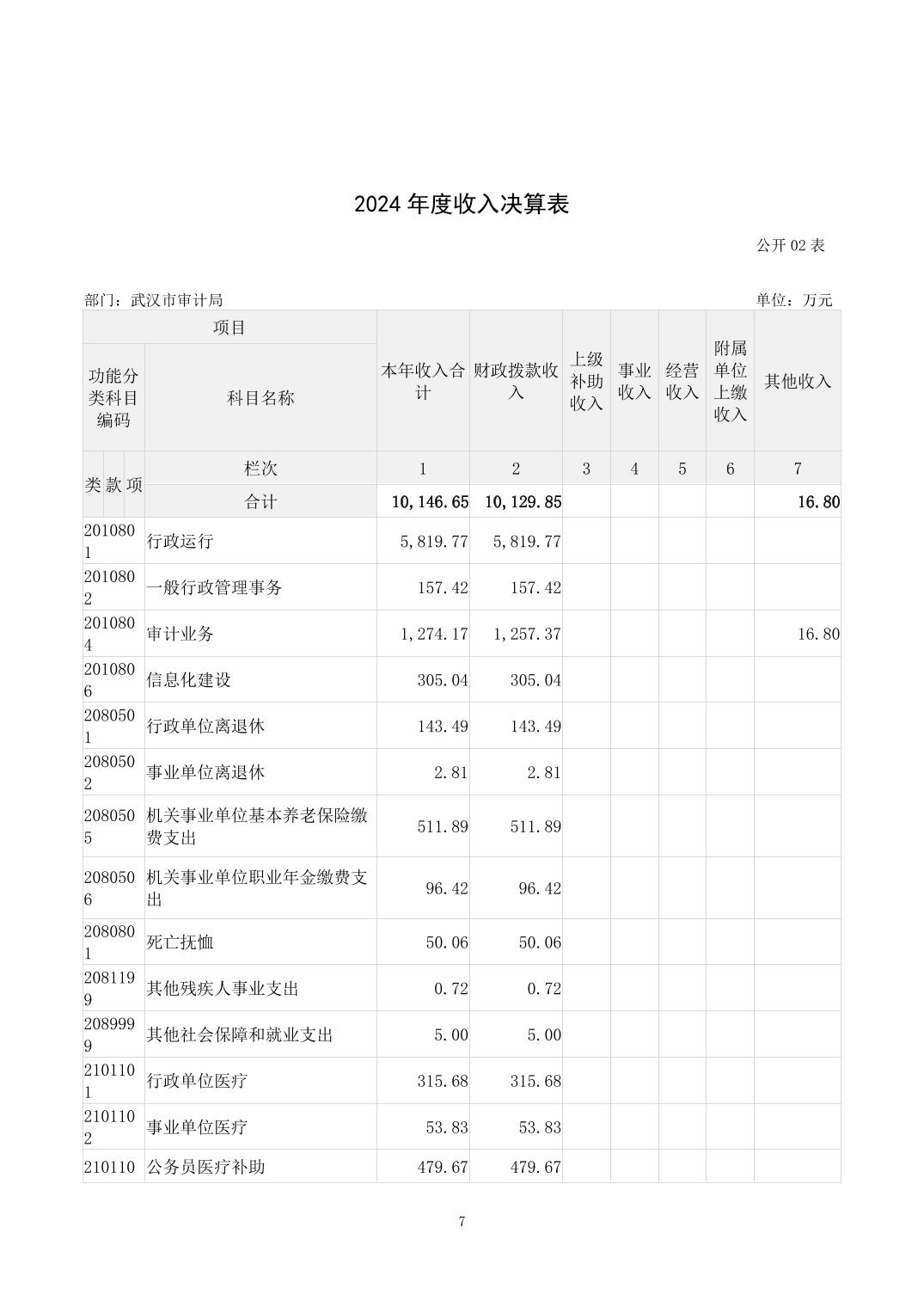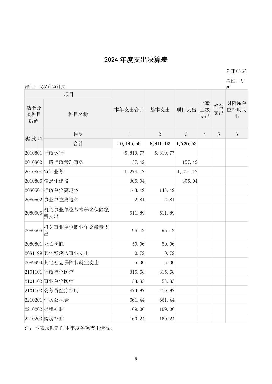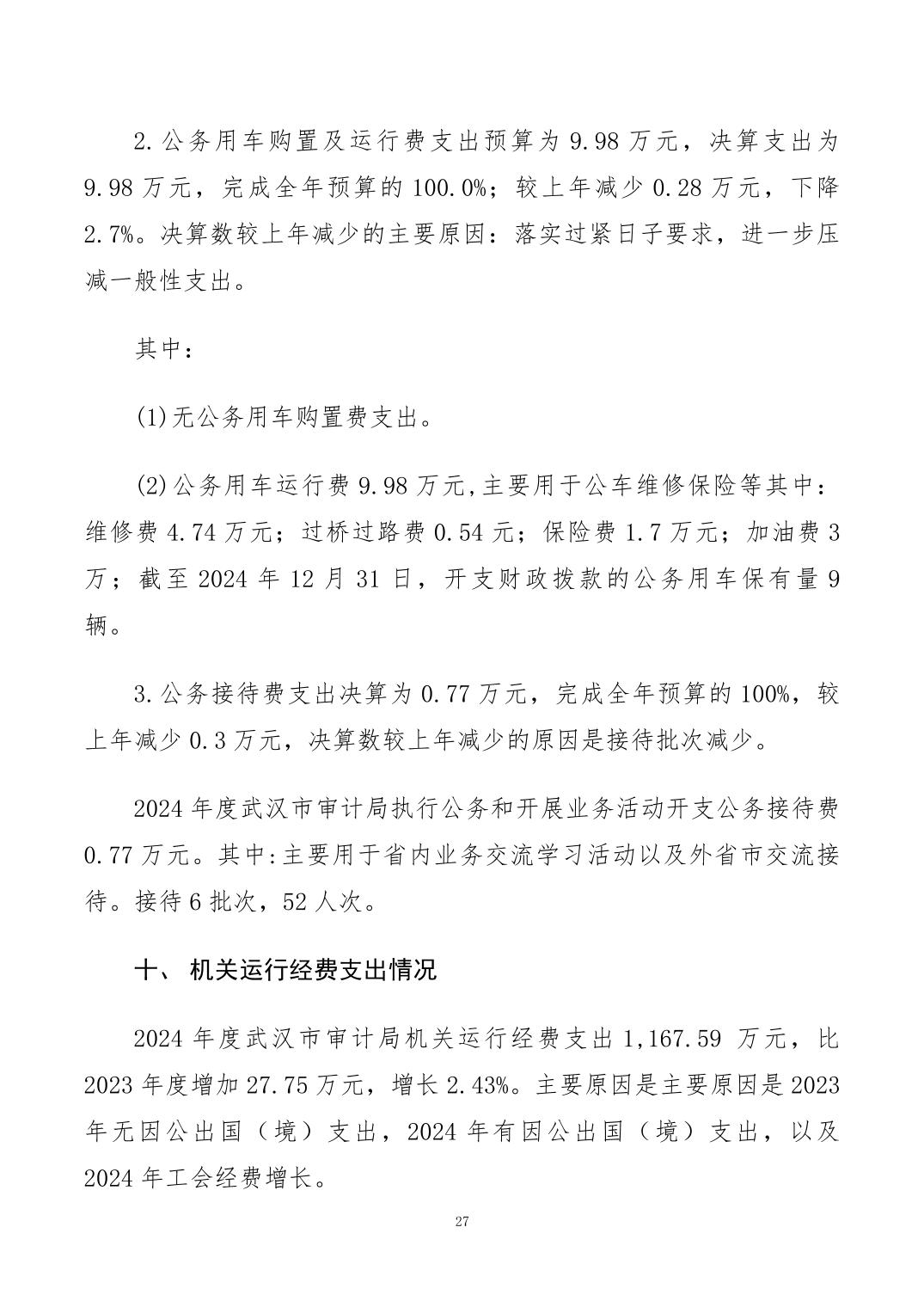 2024年度武汉市审计局部门决算公开