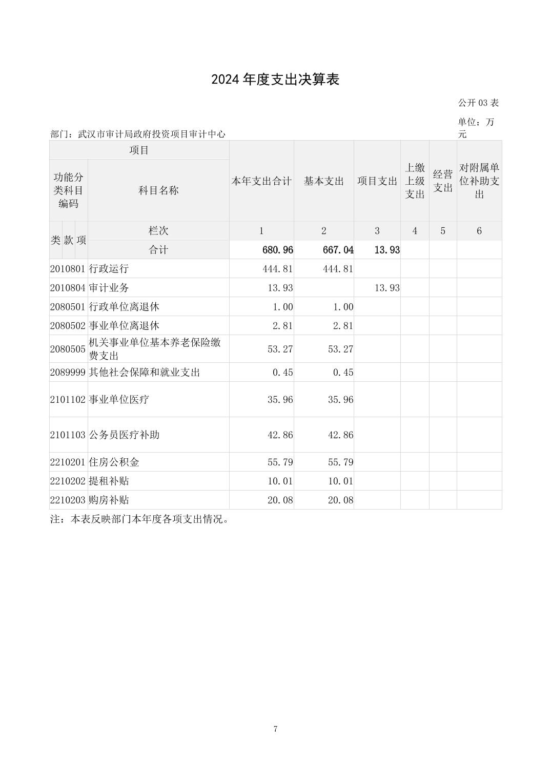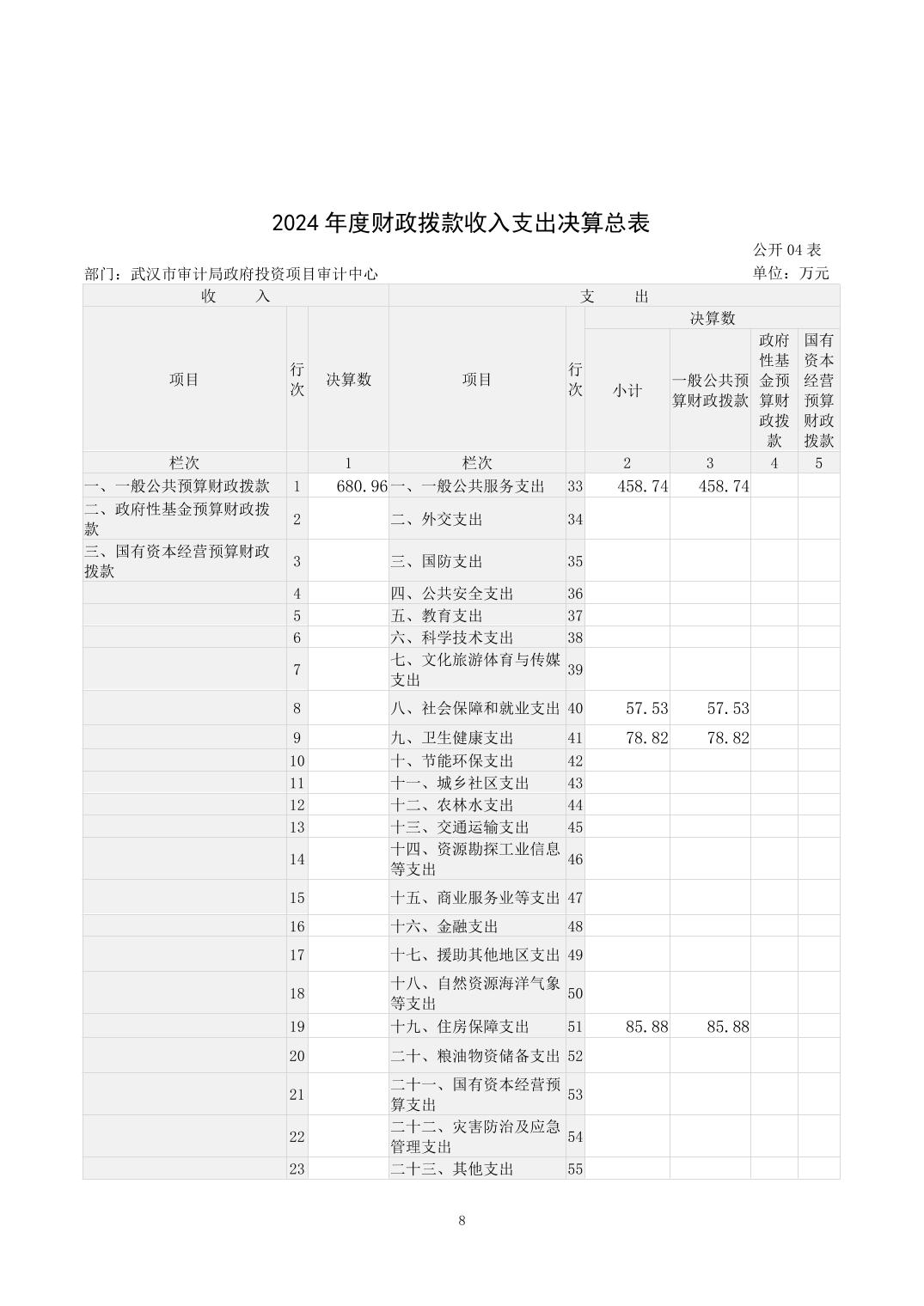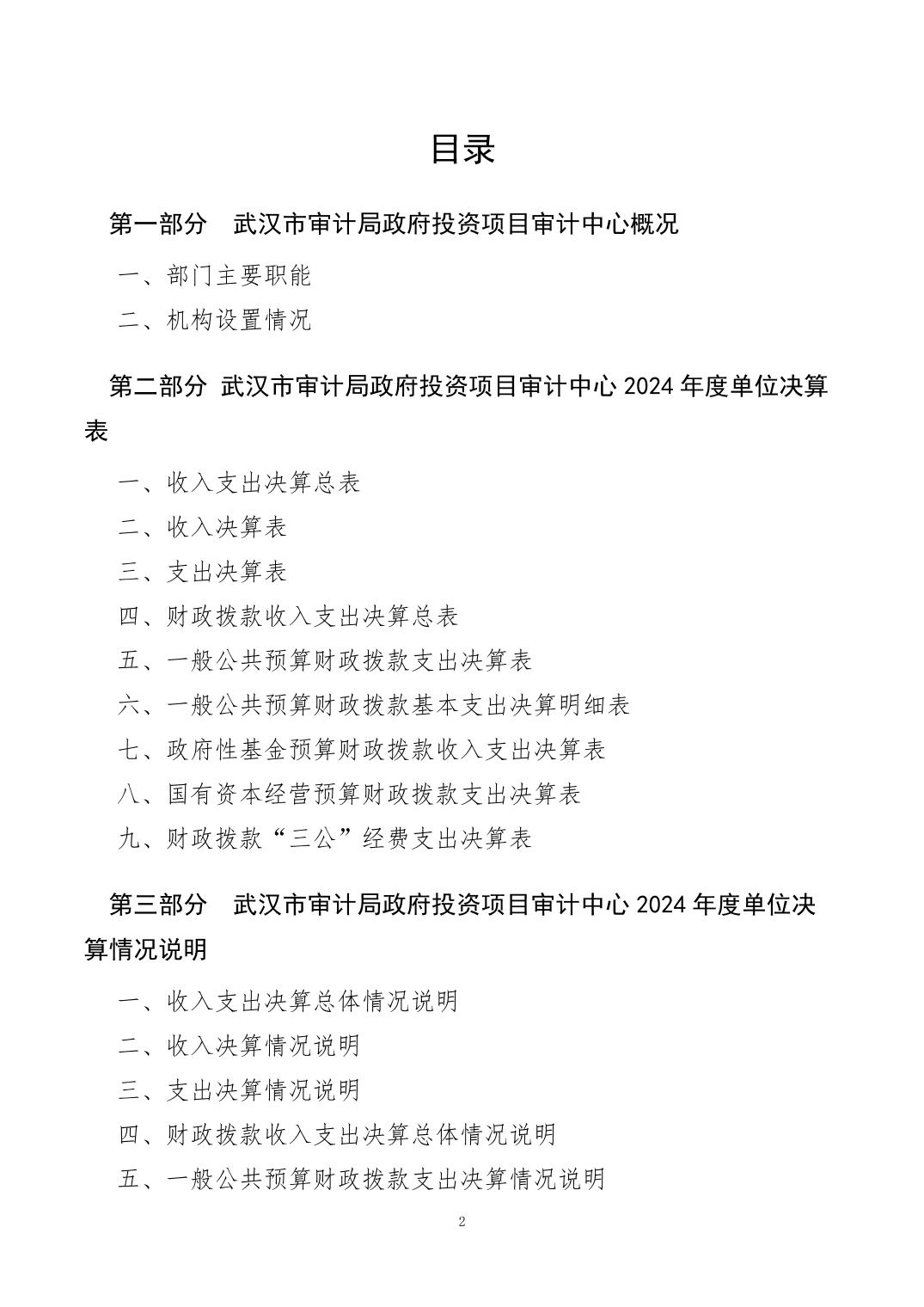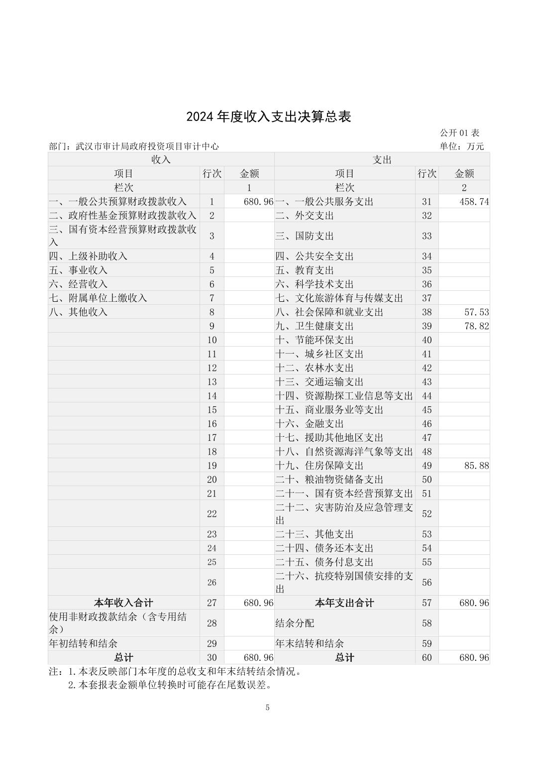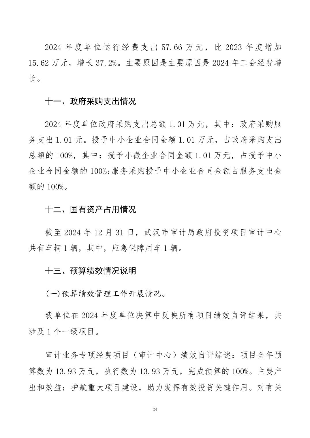 2024年度武汉市审计局政府投资项目审计中心决算公开