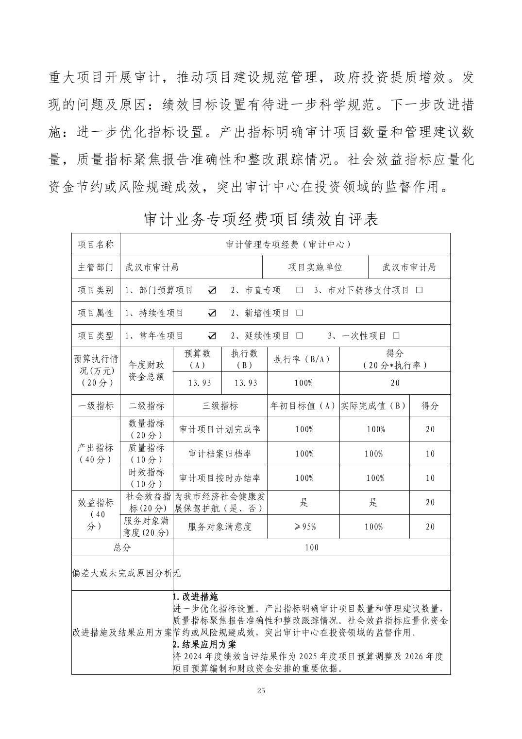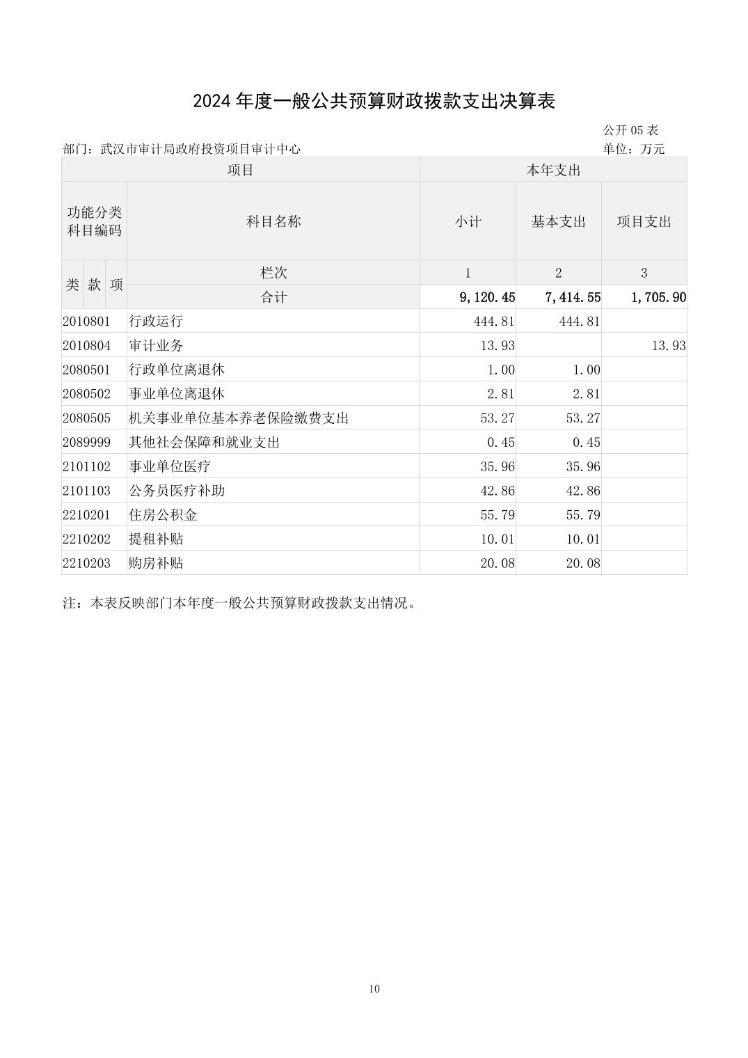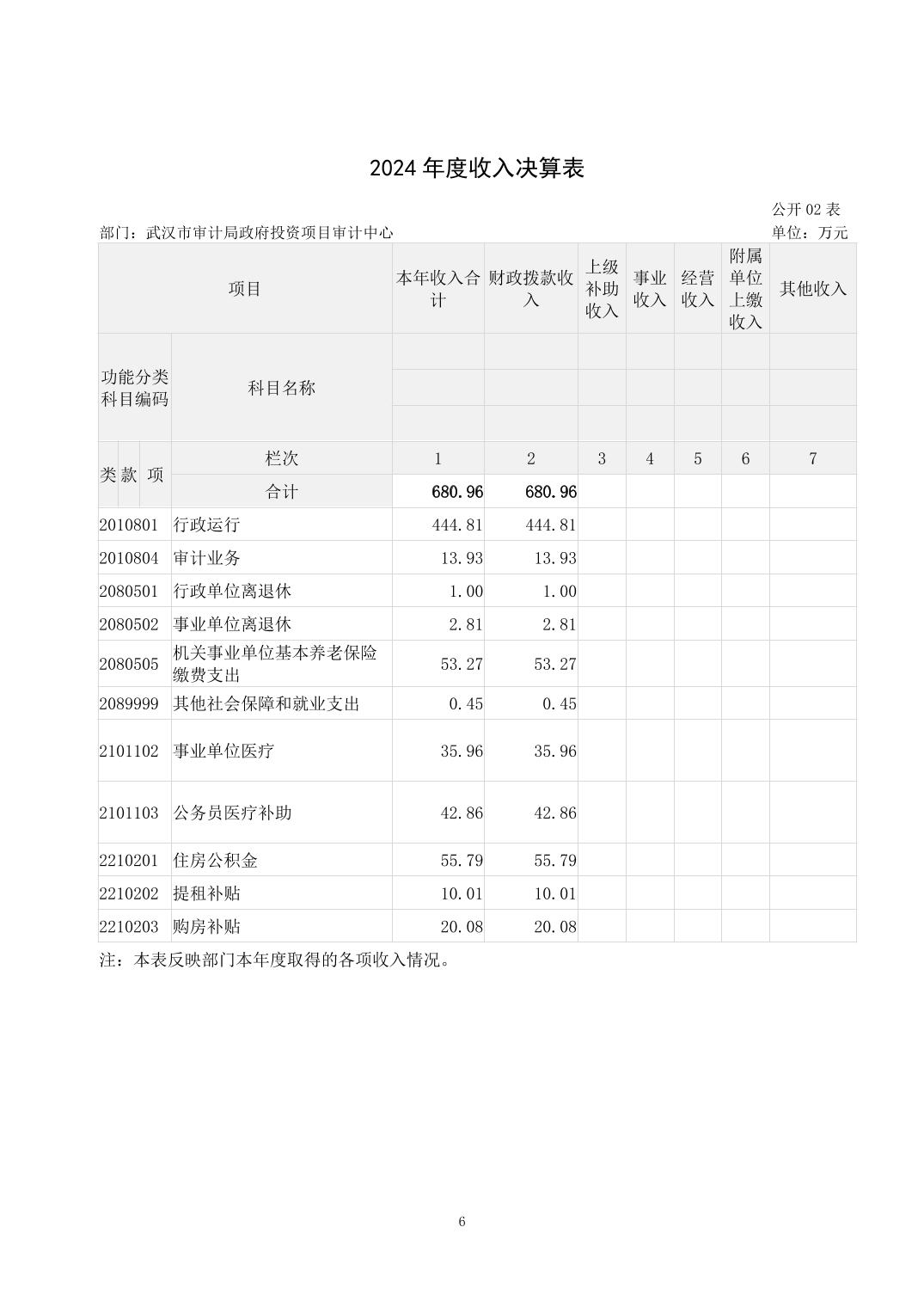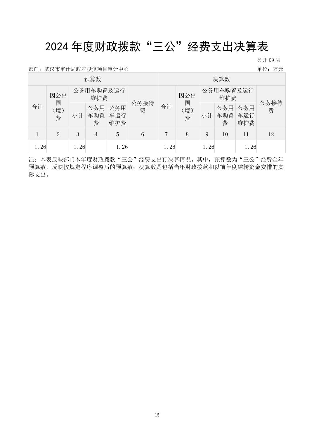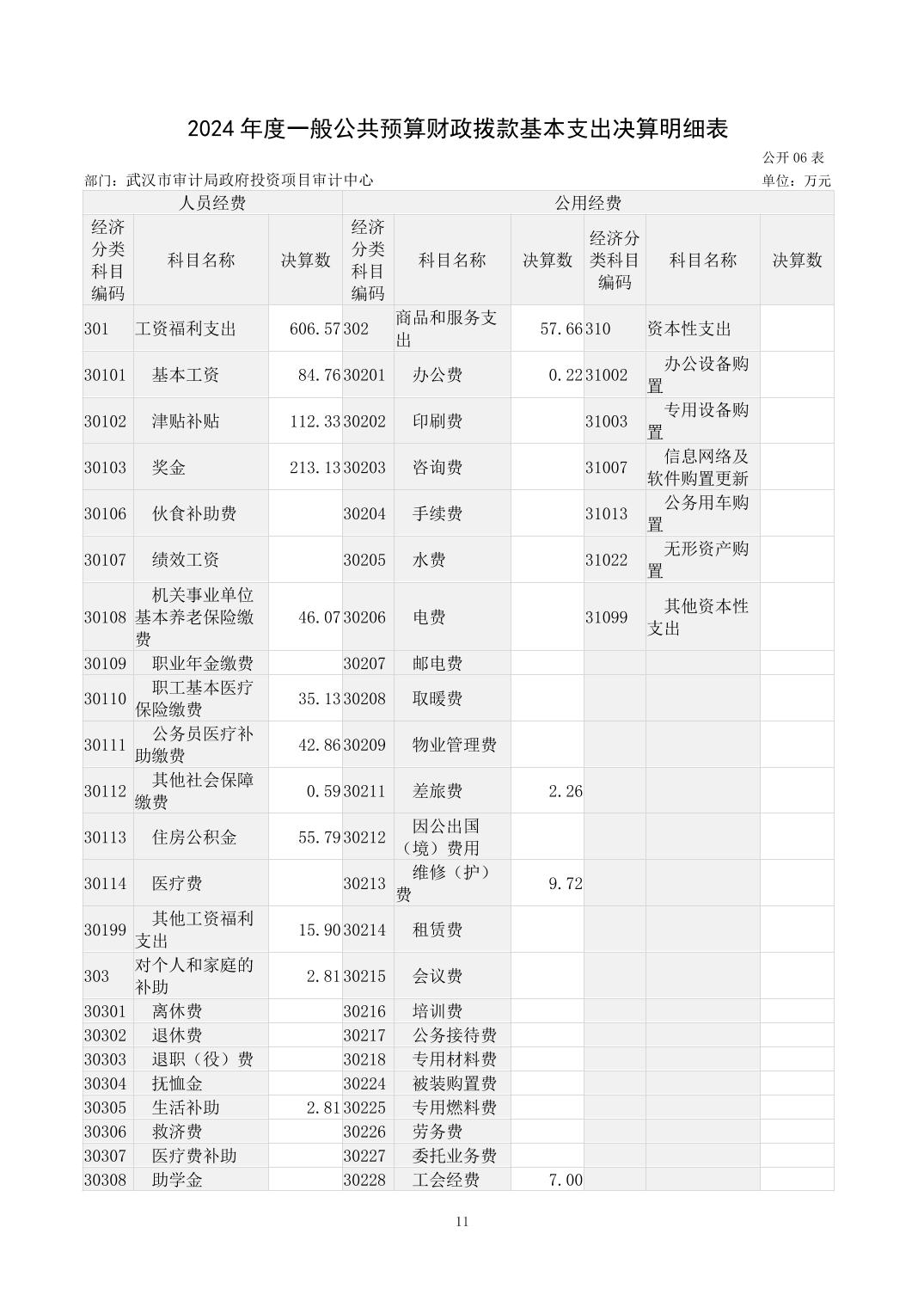 2024年度武汉市审计局政府投资项目审计中心决算公开