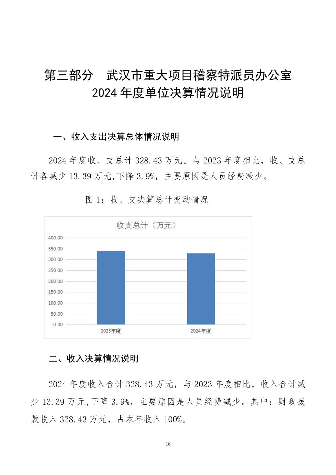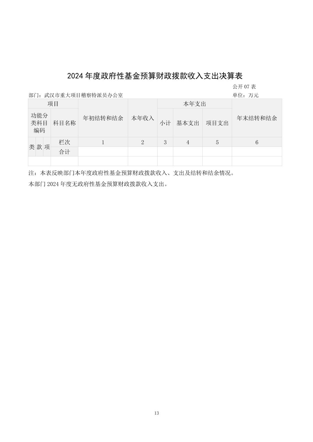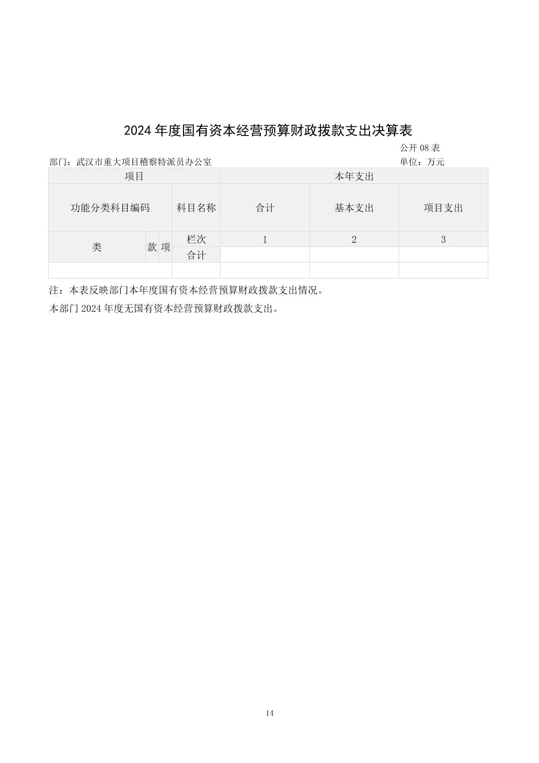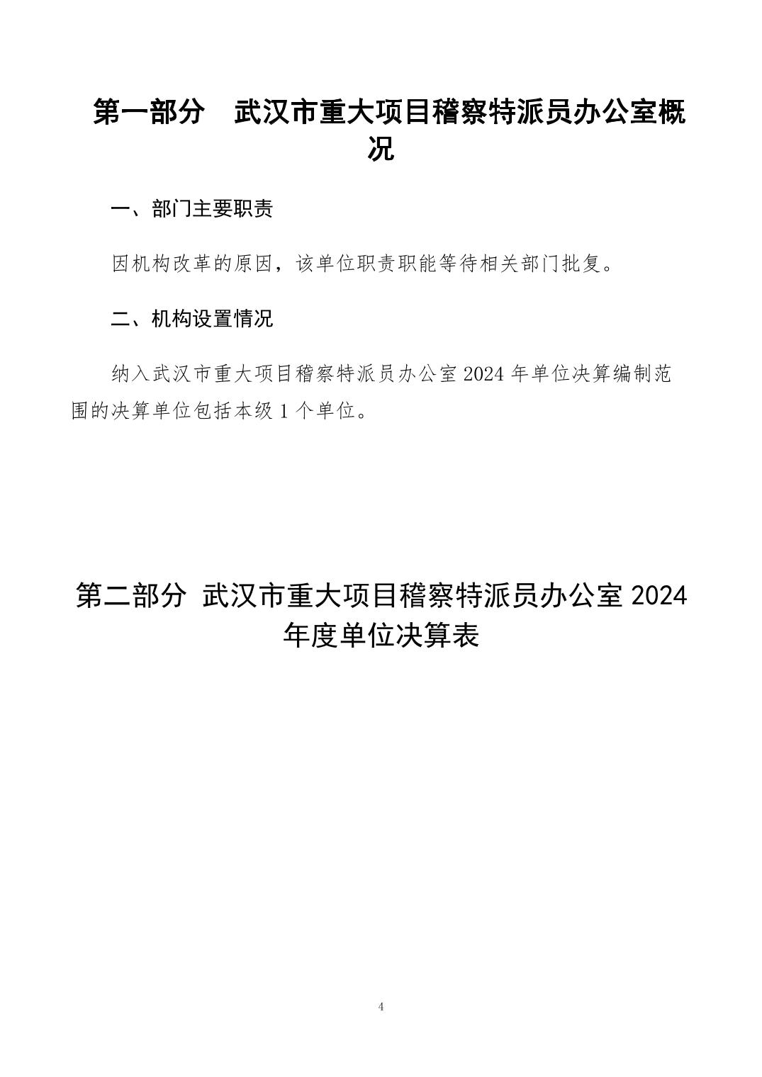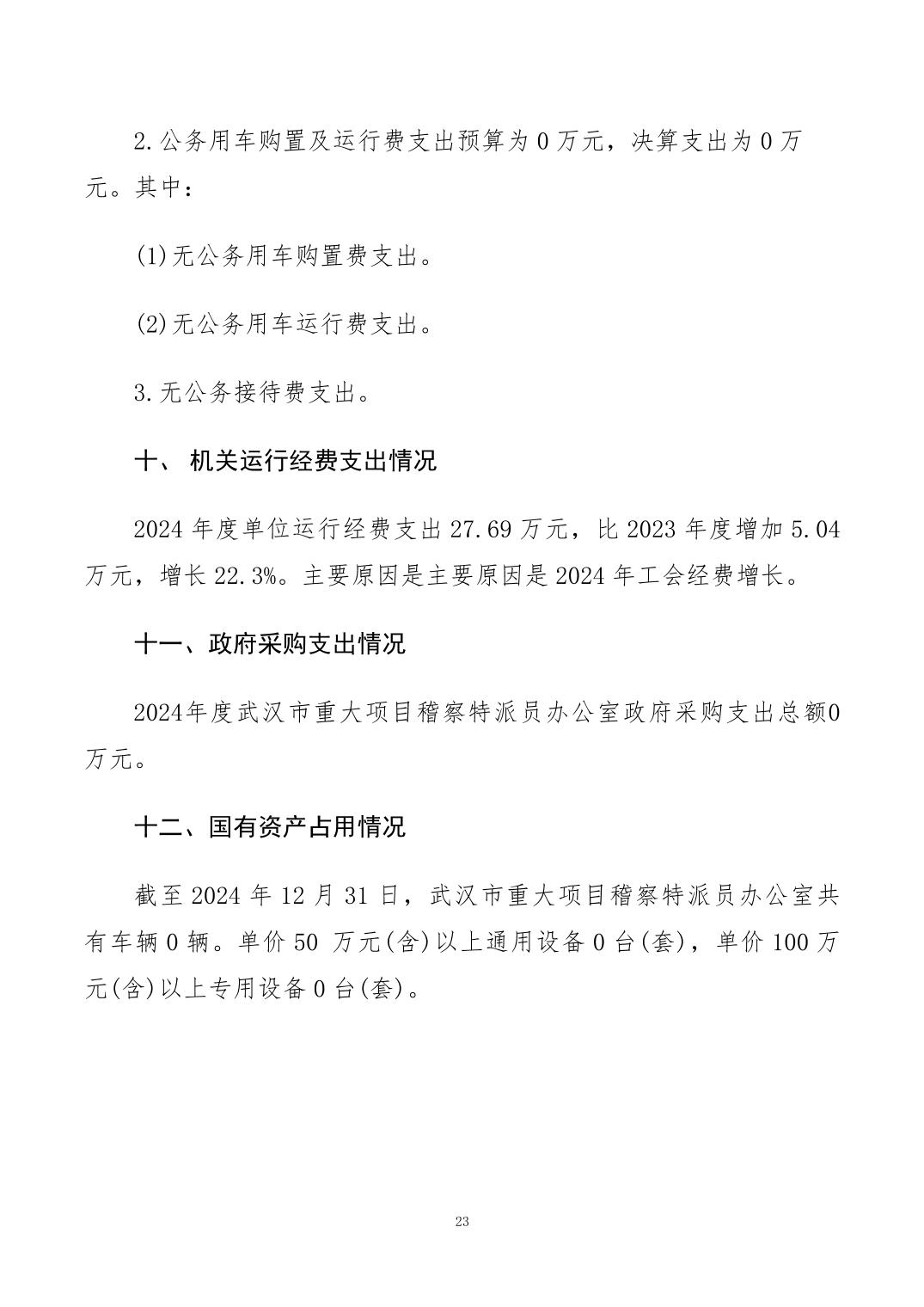2024年度武汉市重大项目稽察特派员办公室决算公开