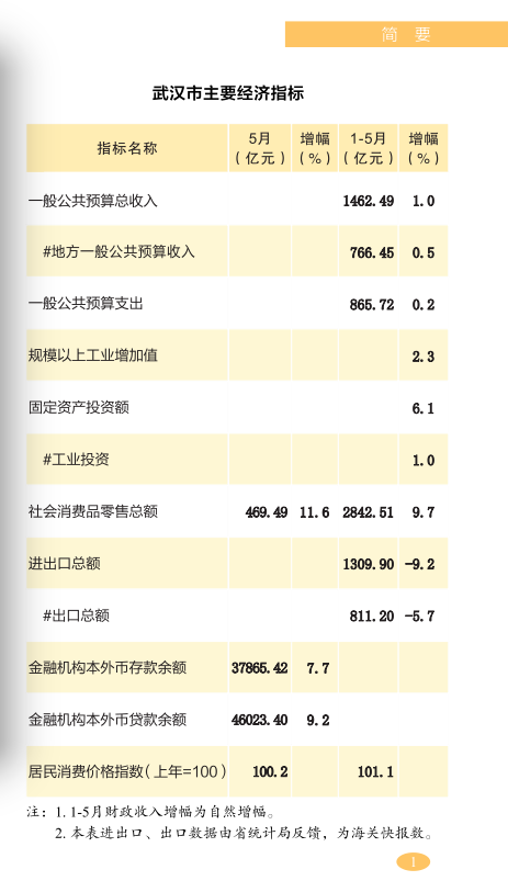 2023年1-5月武汉市国民经济主要指标