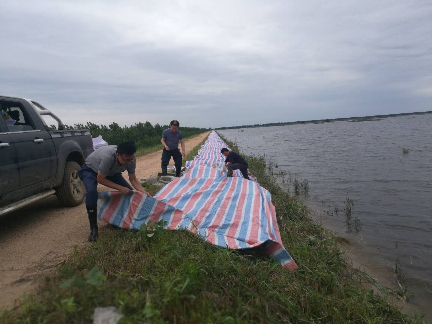 长江最大支流汉江北岸东西湖区审计局领导带领审计人员闻汛而动,破浪而来,灾情面前退缩,鼓足干劲日夜奋战在汉江大堤上,随时注意崩垮、脱坡、渗水、暗漏等异常情况,严格按要求不间断巡堤,确保大堤安全。
