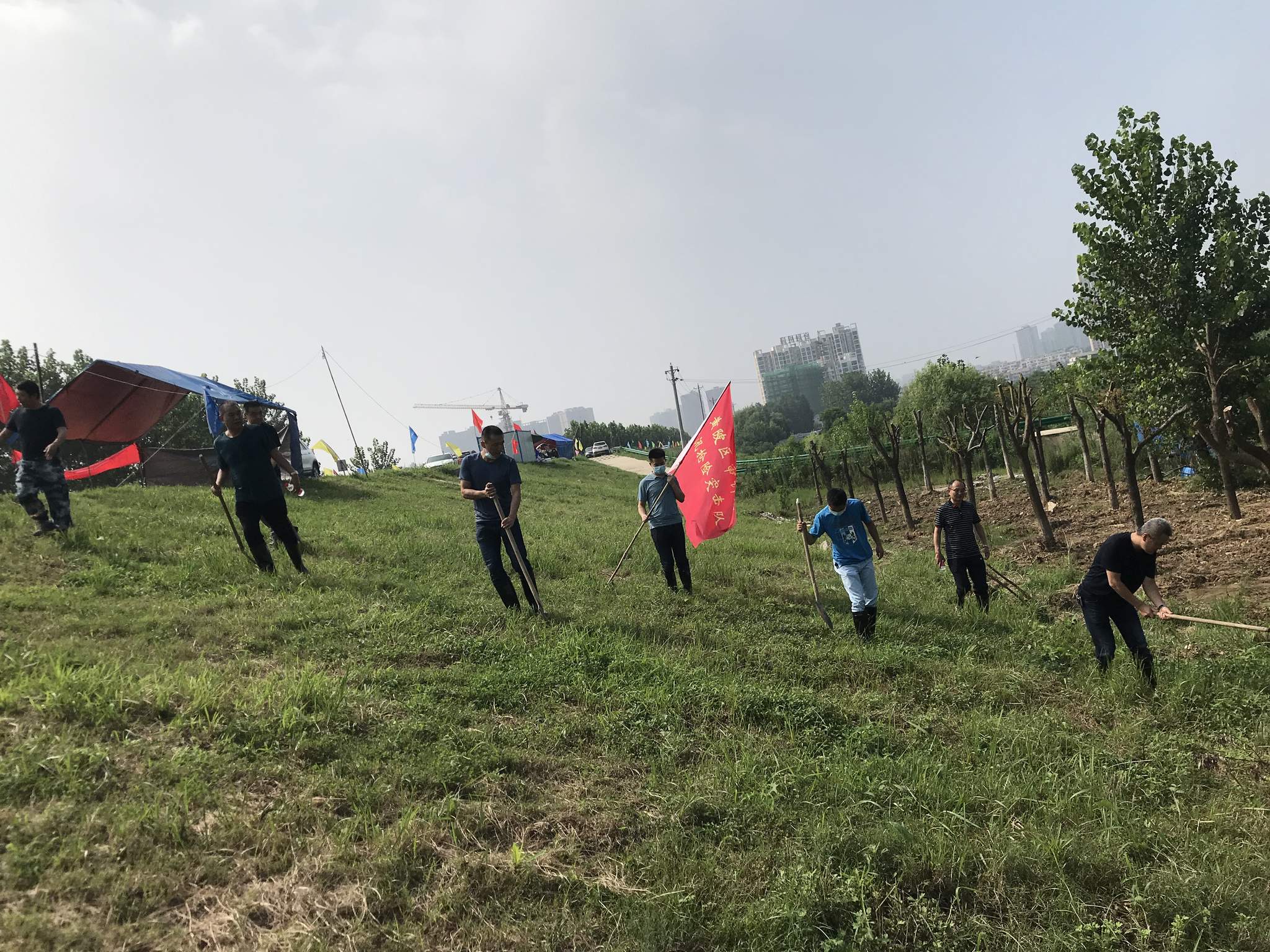 长江北岸蔡甸区审计局实行老中青合理配置值守干部,多轮交替24小时值班。临时成立8人青年应急抢险分队,随时增援周边其他单位险情发生地段。主要领导干部除了值守任务,须随时下到对口的三合村配合群众搞好安置转移工作,详细了解部分村民受灾情况,如实登记造册。适时给予群众心理安抚,与志愿参与防汛的村民一起巡查,共筑大堤,守护家园。