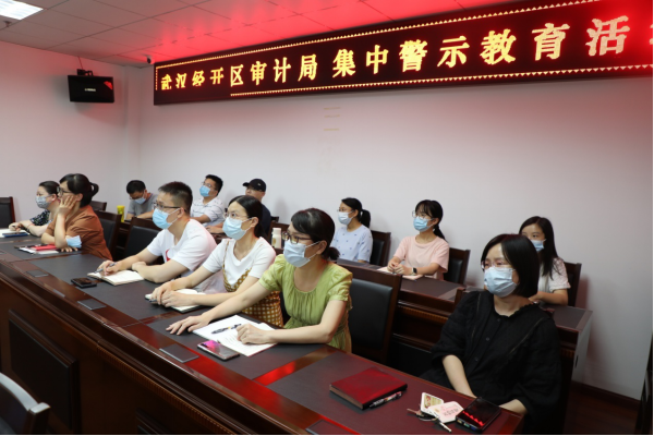武汉经开区审计局结合党风廉政宣教月活动,通过集中收看警示片、警示案例教育、畅谈廉政感悟等形式,教育引导青年干部坚守初心使命,扣好廉洁从审的“第一粒扣子”。