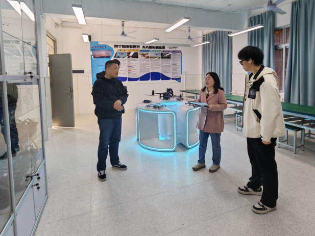 图为审计人员在无人机实训基地了解情况
