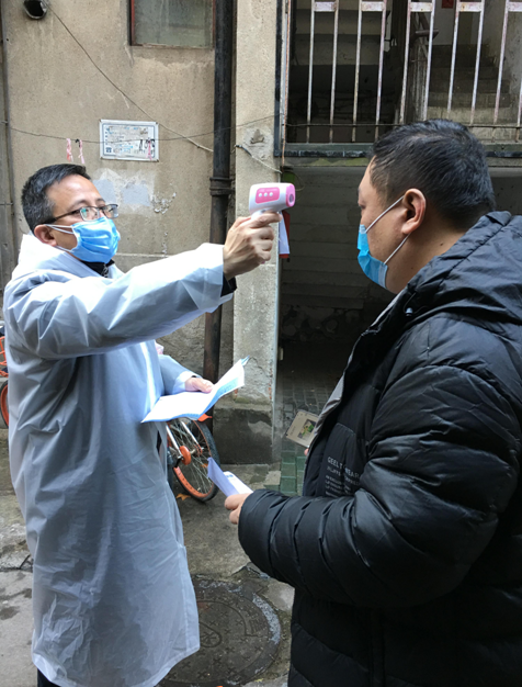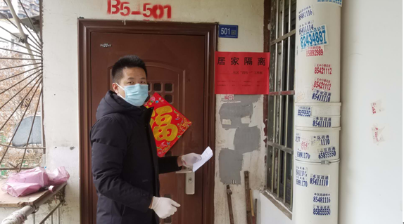 夏坤同志在8点钟第一个赶到分派驻守的教工宿舍小区,立刻支起座椅板凳开始排查执勤工作,并冒着被感染的危险,一起与社区工作人员到10名确诊患者家里,劝说患者家属做好隔离防护,并在患者房门口张贴“居家隔离”提示布告。