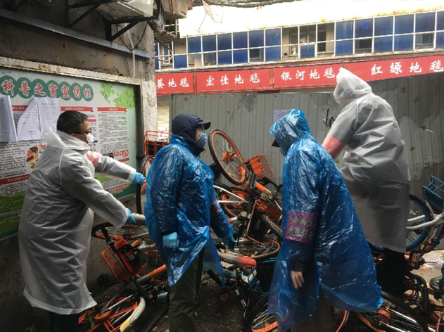2月15日上午10:30,狂风吹倒了驻守教工宿舍小区的围墙。风,吹倒了围墙,吹不倒武汉审计人顽强的抗疫意志。雪,浸湿了衣装,浸不湿武汉审计人火热的抗疫热情。大家齐心协力,迎风而战,冒雪而立,第一时间冲到倒塌的围墙边,沿街搬来近20辆共享自行车堆积在围墙下堵住了路口。