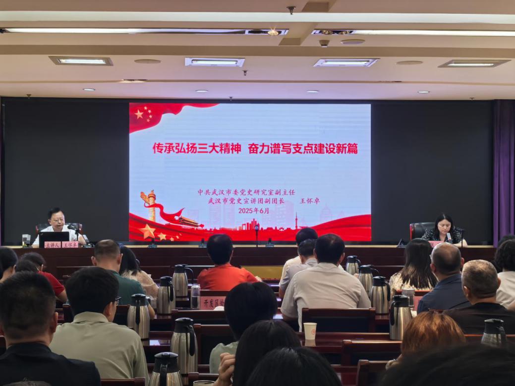 奋力谱写支点建设新篇”专题辅导报告会,邀请市委党史研究室副主任王怀卓作专题讲座。报告梳理了中国共产党人精神谱系中的大别山精神、抗洪精神、抗疫精神等伟大精神,并从历史定位、丰富内涵、外化于行等方面,对“三大精神”进行了深入解读。