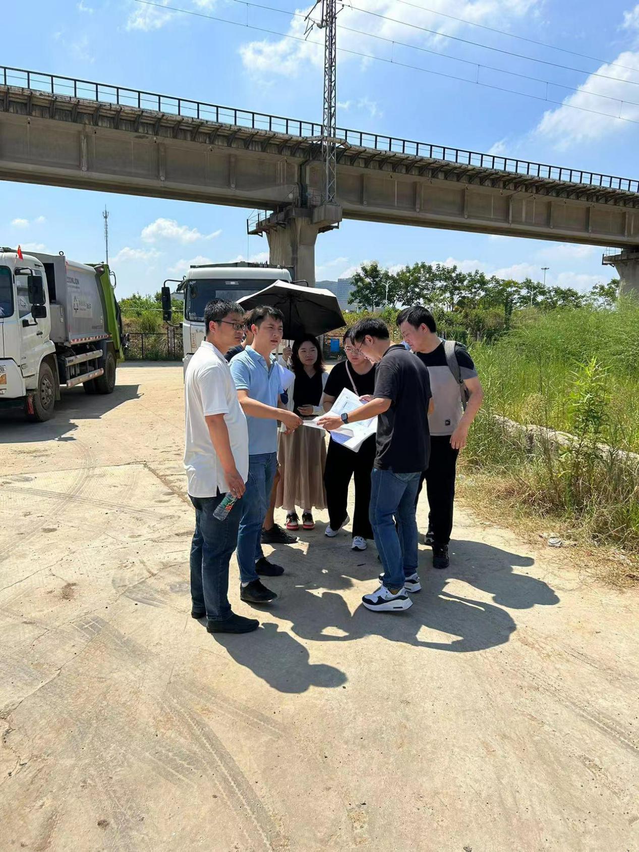图为审计人员现场踏勘轨道交通出入线区域
