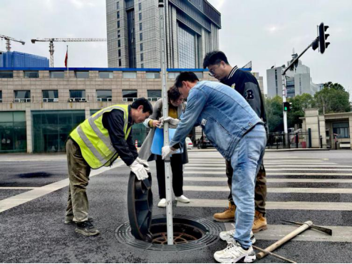 图为审计人员复核污水井埋设深度