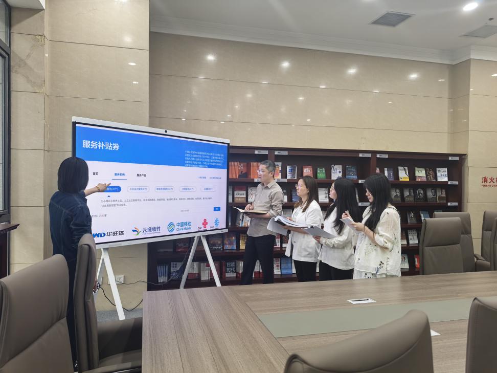 图为审计人员了解小微企业服务补贴券管理使用情况