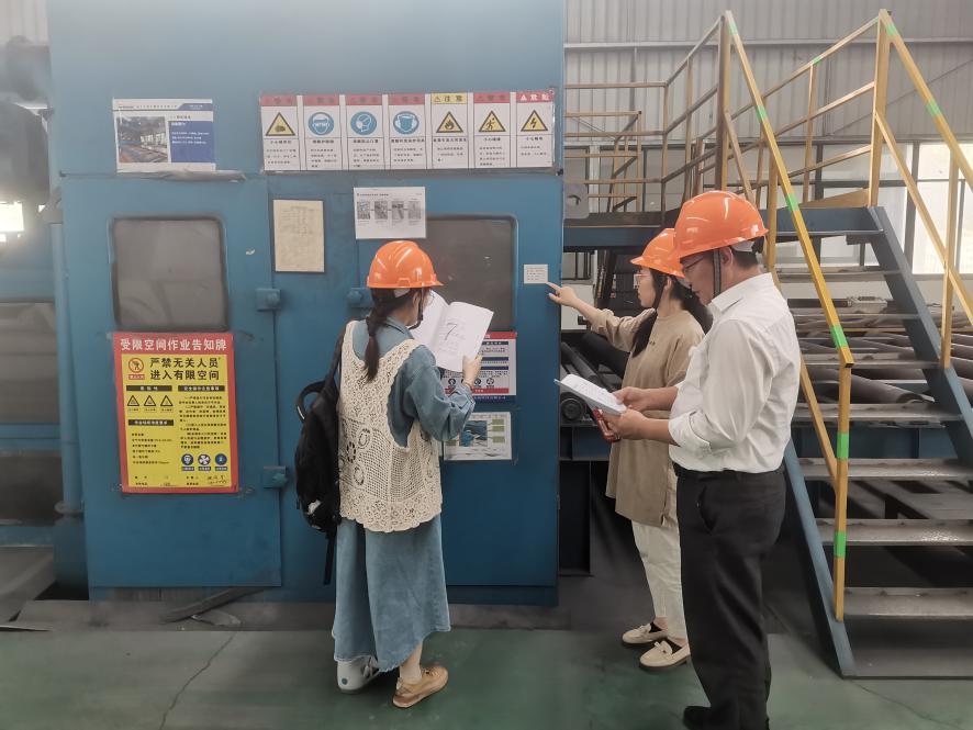 图为审计人员在企业车间盘点项目投资设备