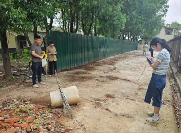 图为审计人员在水产企业测量核对数据