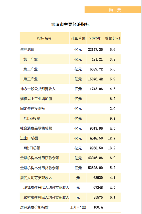 2025年1-12月武汉市国民经济主要指标